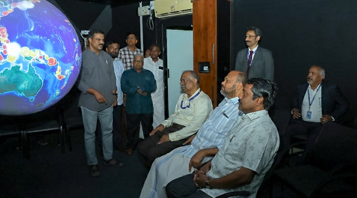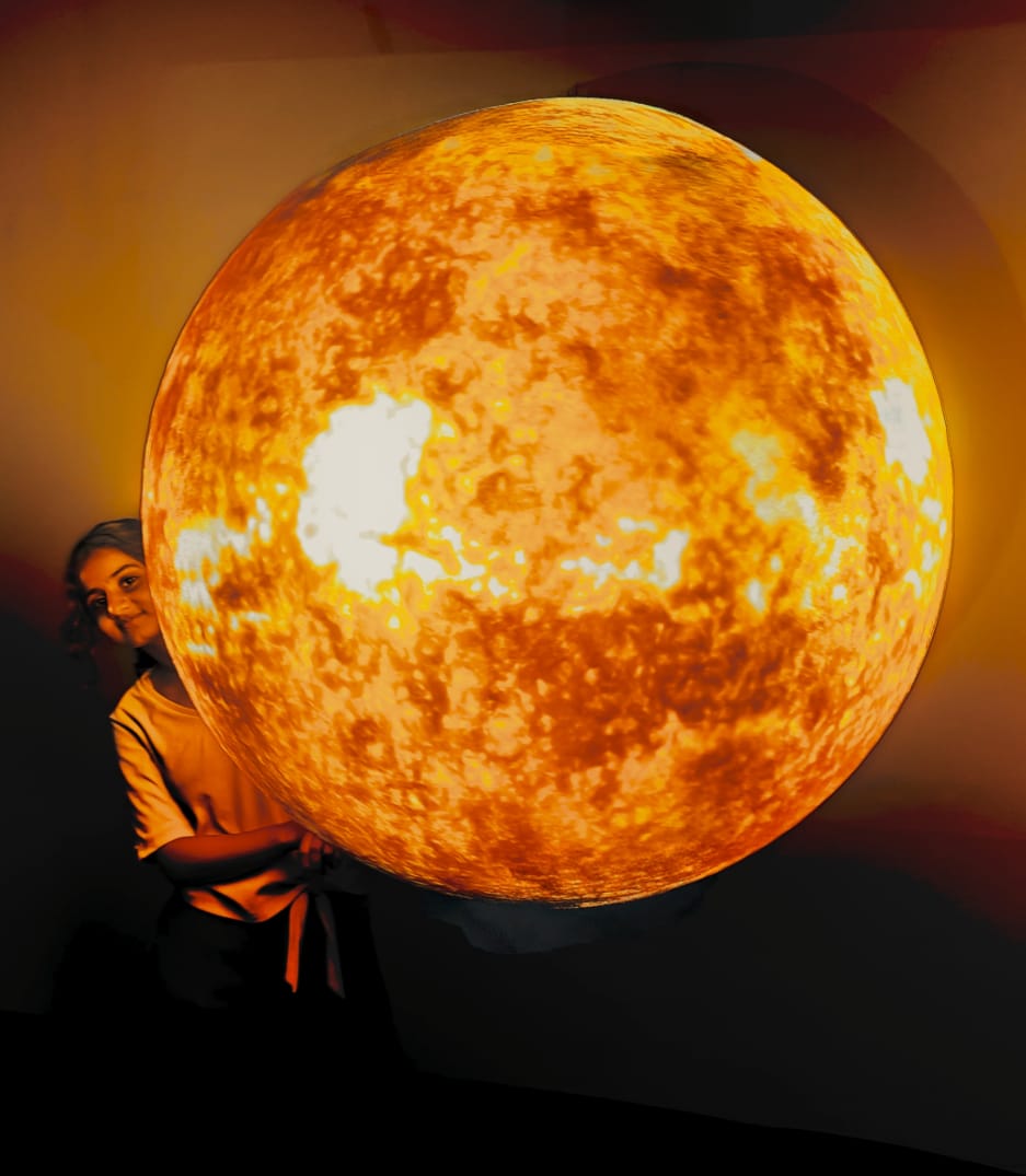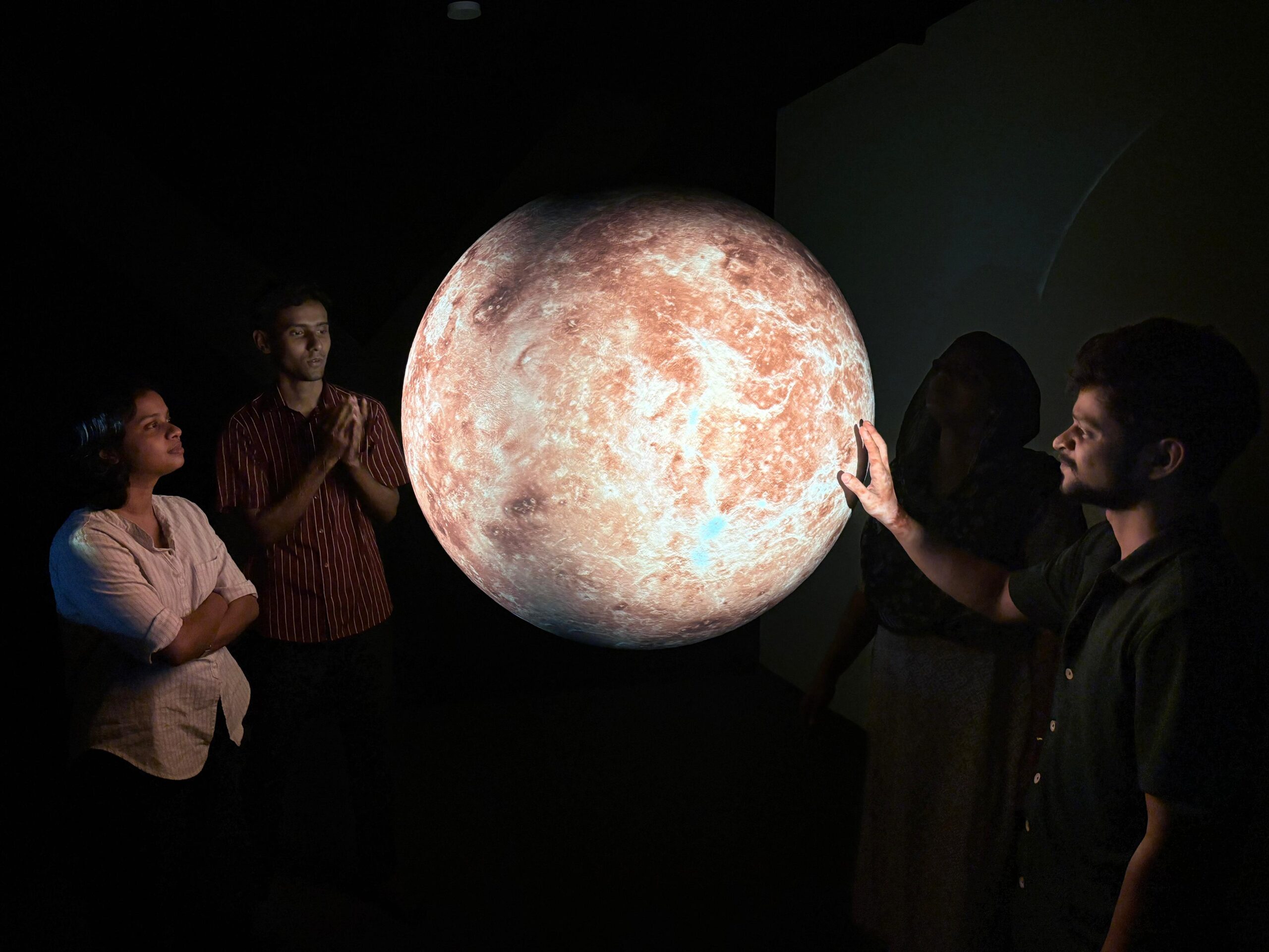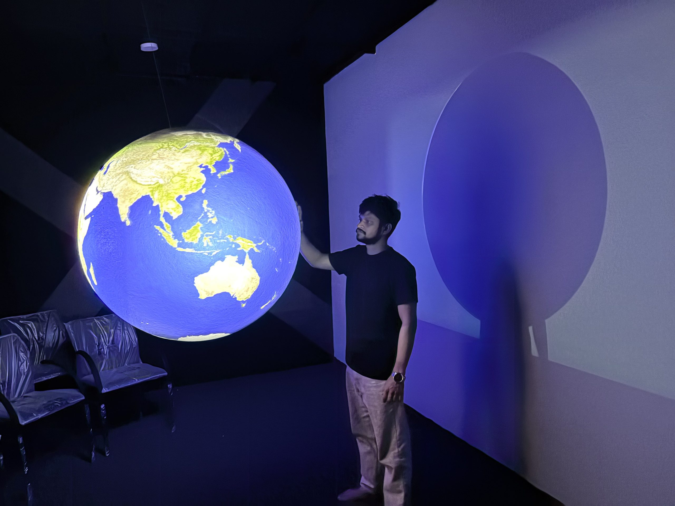 An interactive, visually captivating space where a physical sphere is placed at the center onto which high-quality visuals are projected using projection mapping technique to bring science lessons to life.