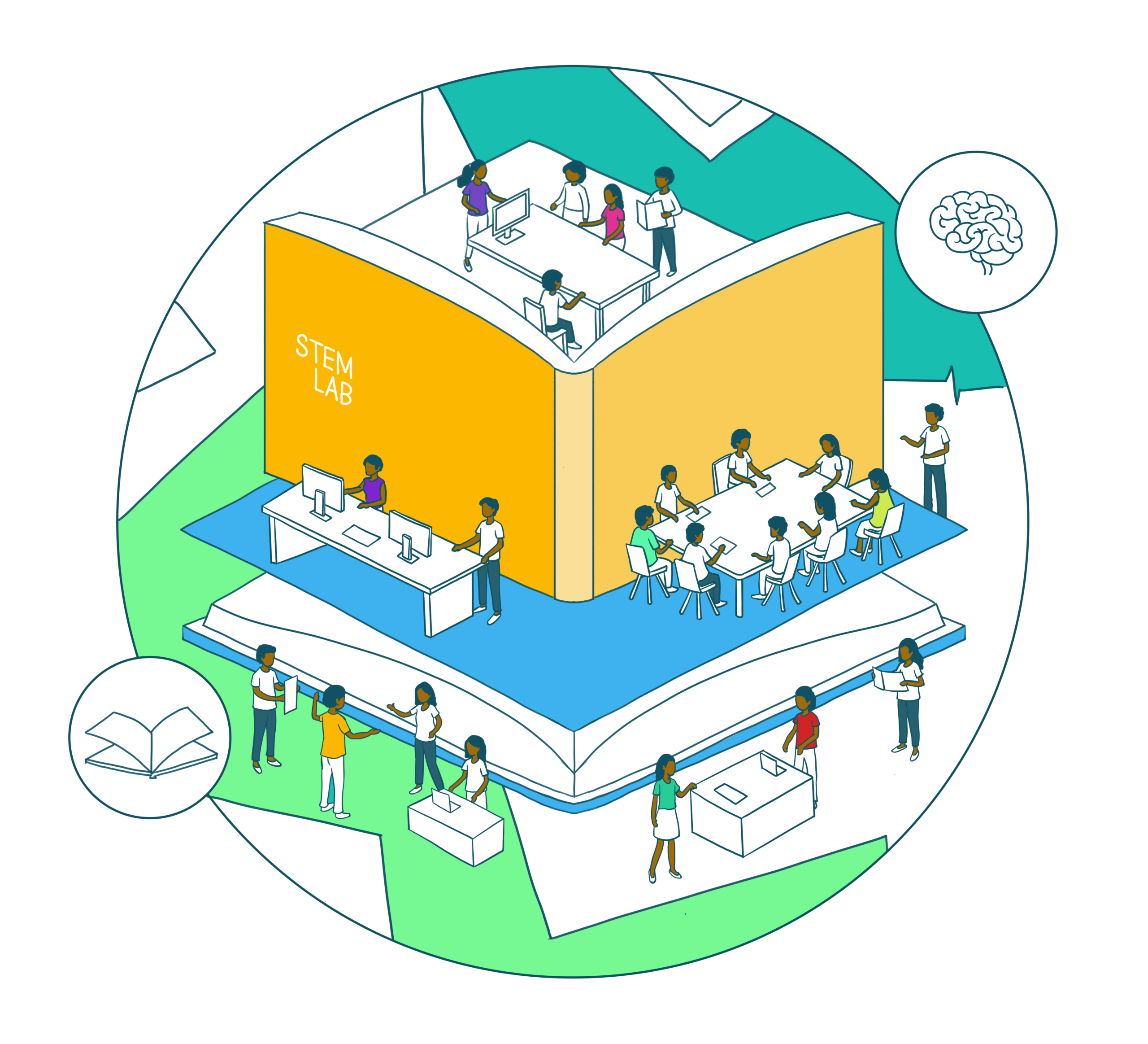 Our expert team collaborates with partners to design, build, and equip learning spaces and tools along with trainings and workshops.
